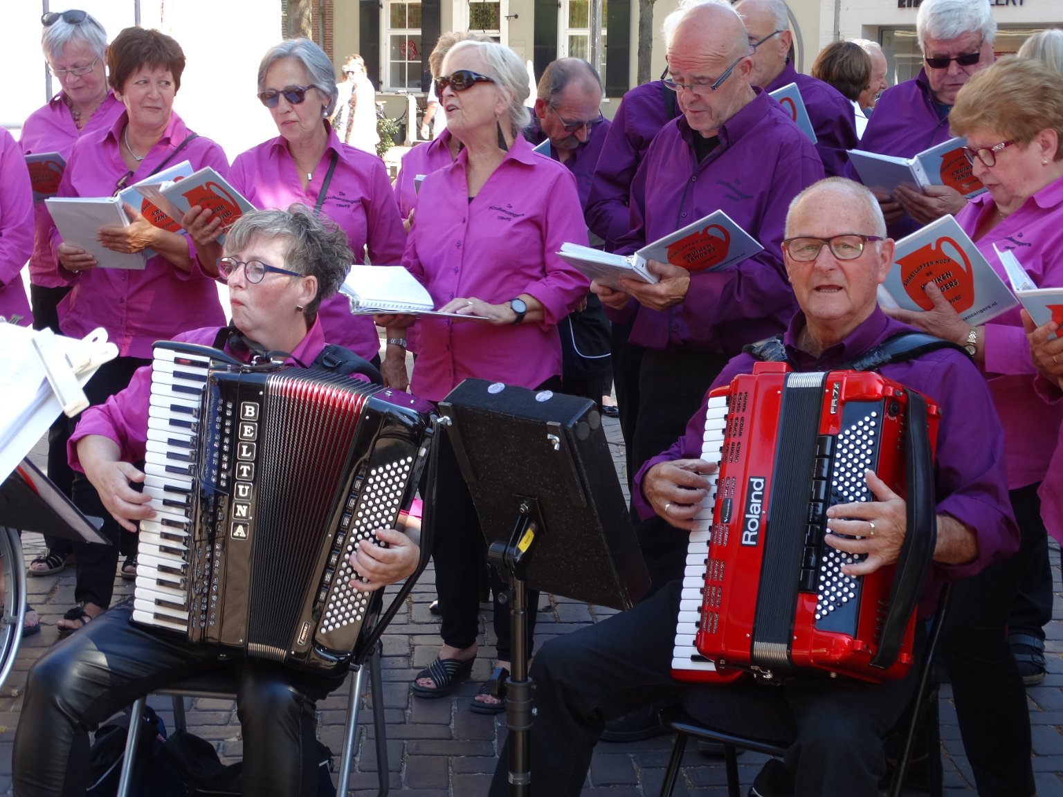 Onder leiding van onze dirigentes Ingrid Kranenburg en MariƩtte Appels en de accordeonisten Karel Steenbergen en Christa v/den Broek. Wij verzorgen gezellige meezingmiddagen of avonden